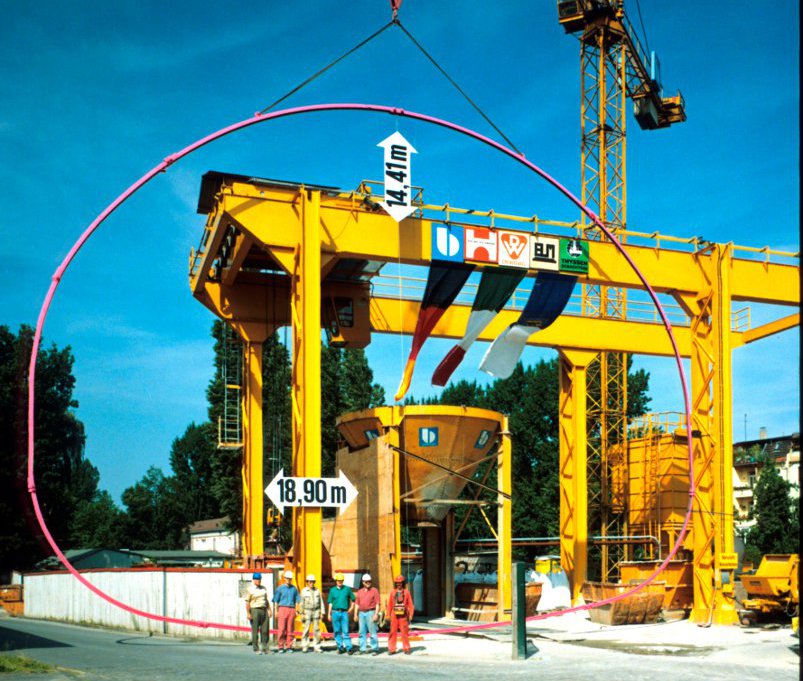 Portalkran am Schacht mit dem kompletten Brillenwand-Profil des Bahnhofs Lohring