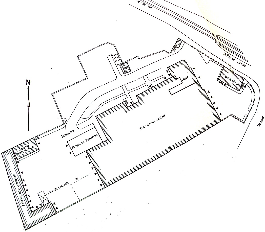1978 wird auch an der Zentralwerkstatt der Wittener Str. 100 noch um einen Anbau mit einem Brems- und Leistungsprüfstand neben dem